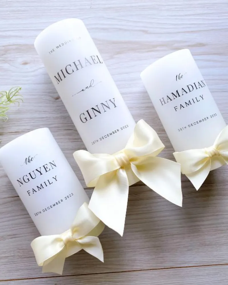 This 3-piece-set of wedding candle has been popular with beautiful main pillar and two mid candles mostly given to family of couples. Simple yet elegant design that are just ideal gift for loved ones.